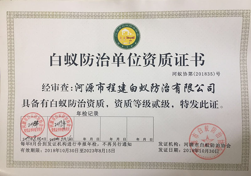 白蟻防治單位資質證書