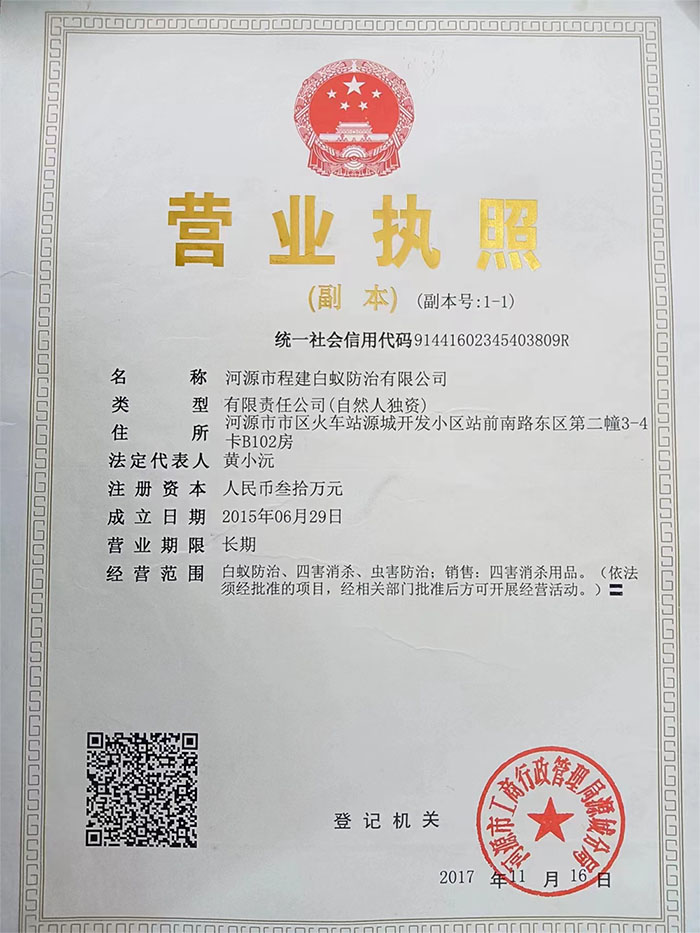 河源白蟻防治公司營業執照